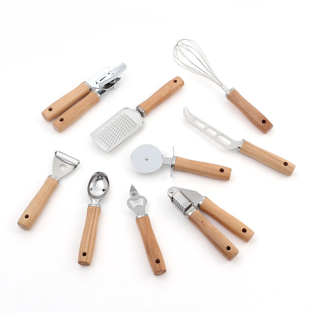 Cuchillo de queso, prensa de ajo y pelador – aliados prácticos en la cocina diaria.